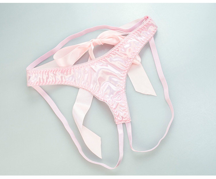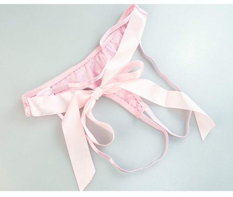 Flirty Pink Bow Tie Two-Piece Set: Seductive Open Crotch Design with Complimentary Thong.