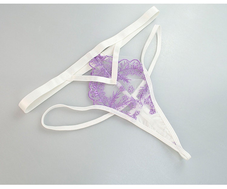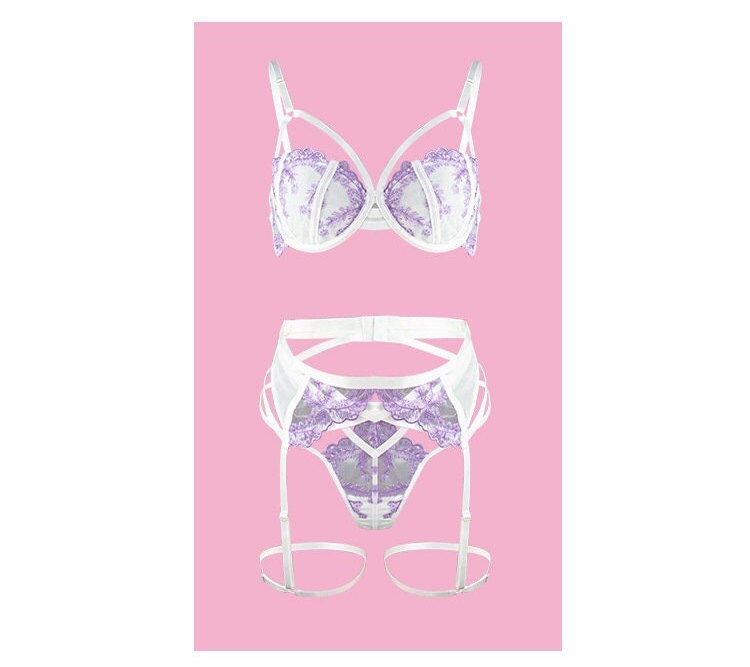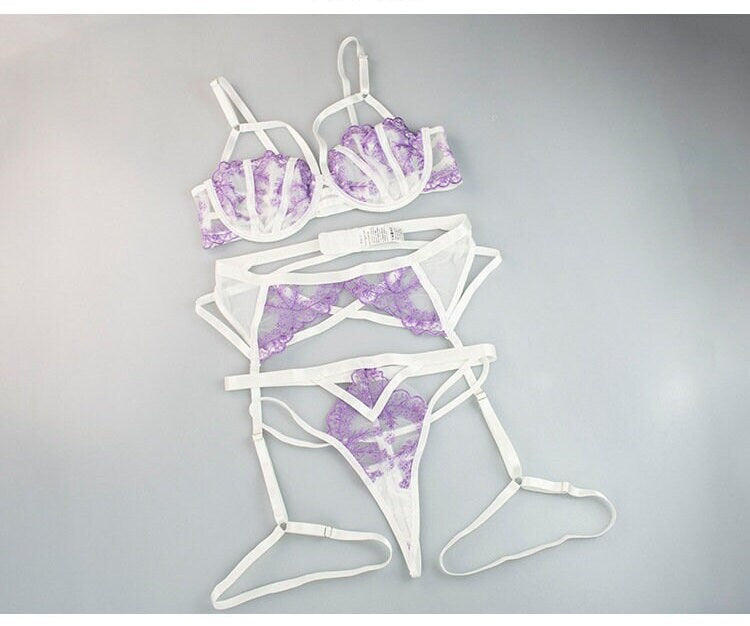 Exquisite Lace Embroidered Lingerie Set: High-Quality, Sensual Three-Piece Ensemble with Alluring Thong.
